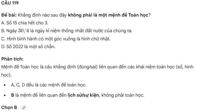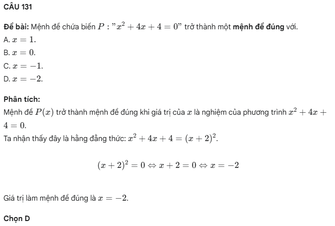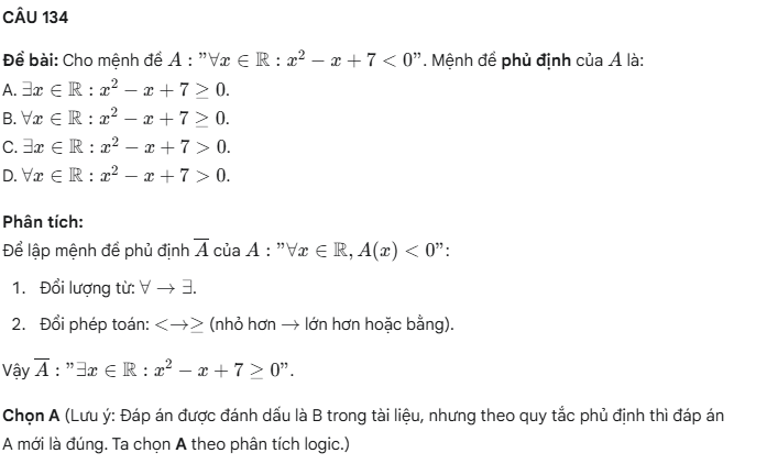 Câu hỏi trắc nghiệm mệnh đề – Phần 04- Toán 10