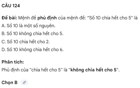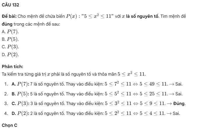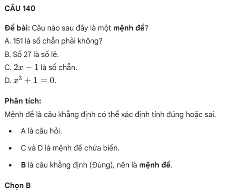 Câu hỏi trắc nghiệm mệnh đề – Phần 05- Toán 10