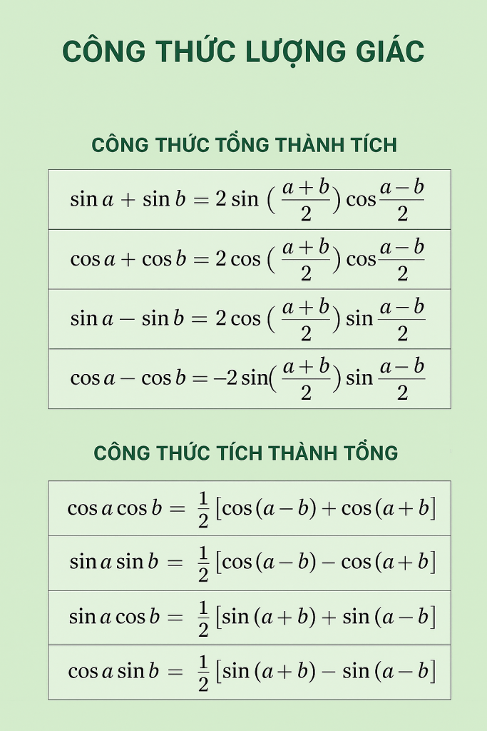 CÔNG THỨC BIẾN ĐỔI TÍCH THÀNH TỔNG