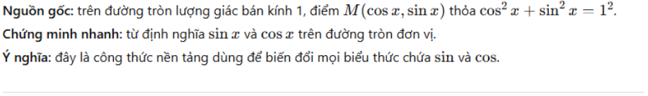 CÔNG THỨC LƯỢNG GIÁC CƠ BẢN — giải thích & chứng minh
