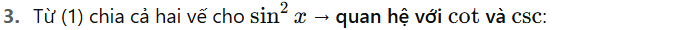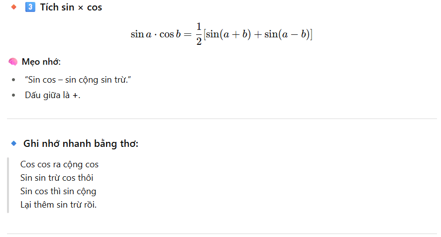 Tức là ta chuyển các tích sin×sin, cos×cos, sin×cos thành tổng hoặc hiệu của các cos/sin.