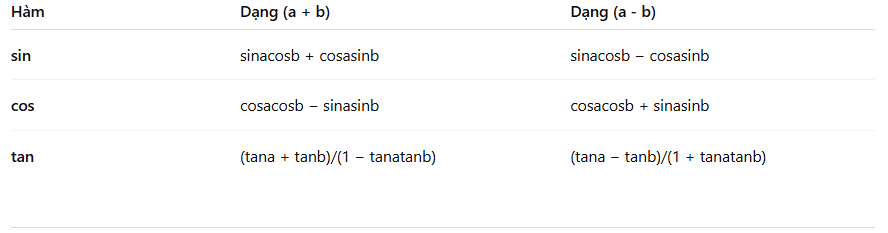 a) CÔNG THỨC CỘNG VÀ TRỪ CỦA SIN, COS