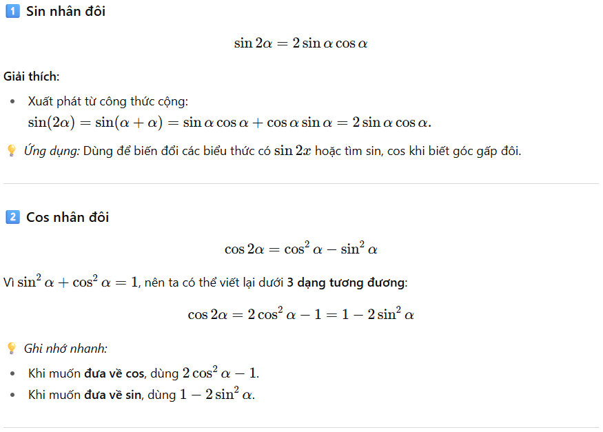 4. Công thức nhân đôi, công thức hạ bậc