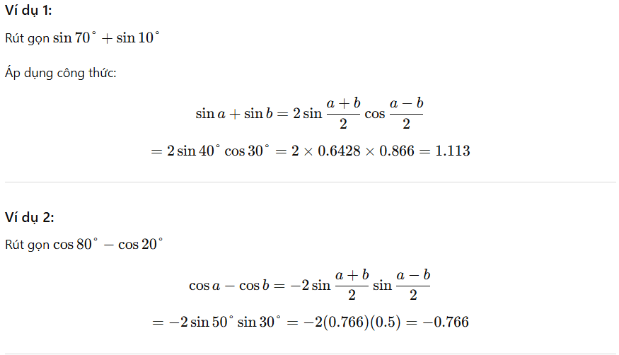 Điều này giúp đơn giản hóa biểu thức hoặc tính tích hai hàm lượng giác dễ hơn.