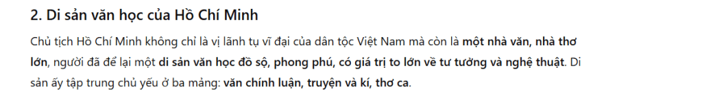 b. Văn chương phải chân thật và mang đậm tính dân tộc Hồ Chí Minh luon đe cao tính chân thật và tính dân tộc trong sáng tác văn học.