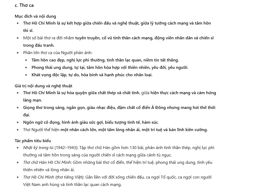 Thơ Hồ Chí Minh là sự hòa quyện giữa chất chiến đấu và chất trữ tình, giữa hiện thực và lý tưởng, giữa cổ điển và hiện đại.