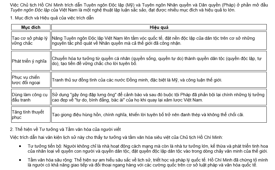 Lời văn “Tuyên ngôn độc lập” có lúc vang lên chắc chắn, vững chãi khi tác giả trích dẫn những bản tuyên ngôn của nước Mỹ, Pháp.